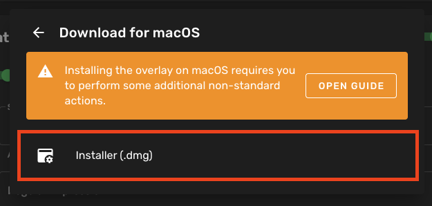 Open the overlay download website and select the Installer (.dmg)