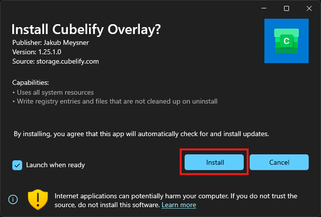 option. This will download a file called CubelifyOverlay.appinstaller.