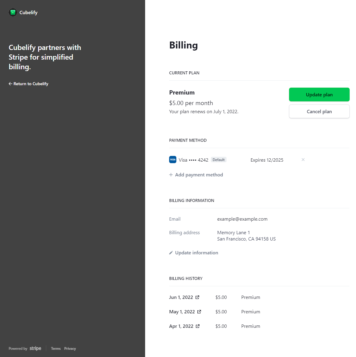 To manage your subscription, open Cubelify account settings. Log in if required.