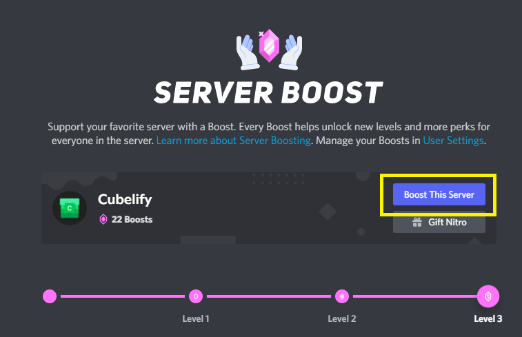 Afterwards if the booster limit hasn't been reached yet, or you'd like to reserve a spot in the queue, boost the Discord server.